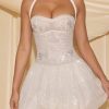 Ready for party season. Cut to a stunning bubble-hem silhouette, the Felicity mini dress is made from premium 20D stretch mesh that sculpts and shapes to your curves. It’s framed with a cupped sweetheart neckline and an adjustable satin halterneck tie for enhanced support where you want it most. It’s complete with all-over HOTFIX embellishments that sparkle under spotlights.