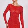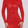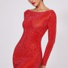 Sultry moments. A glittering design cut from premium dual-layered mesh with hotfix embellishment throughout, Delfina is a minimalistic silhouette with high-impact detailing. With a sleek high neckline and a seductive low cowl back, this bodycon mini dress is perfect for partying from dusk till dawn.