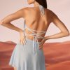 The chic halter neckline adds an elegant touch to Juni, our latest fun and flirty mini dress perfect for festival season. Designed in our semi sheer mesh fabric with embellished fishnet overlay that drapes across your body to create a glittering and seductive look, the Juni mini dress features darting at the front of the garment to enhance your shape. Complete with a fun and flirty handkerchief hem mini skirt and daring open back, the Juni mini dress is perfect for creating a memorable festival look you’ll love year after year.