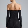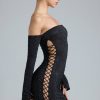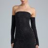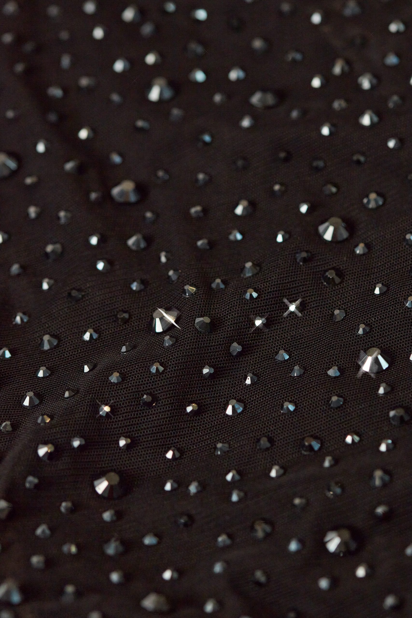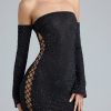 Bring fantasy to life with the Jade mini dress. Taking inspiration from iconic muses from the noughties and signature festival styling, it’s designed in our curve-skimming 20D mesh fabric and traced with lace-up cut-outs at each side. Framed with a bandeau neckline and off-shoulder long sleeves, it’s embellished with scores of rhinestone embellishments for a statement touch of sparkle.