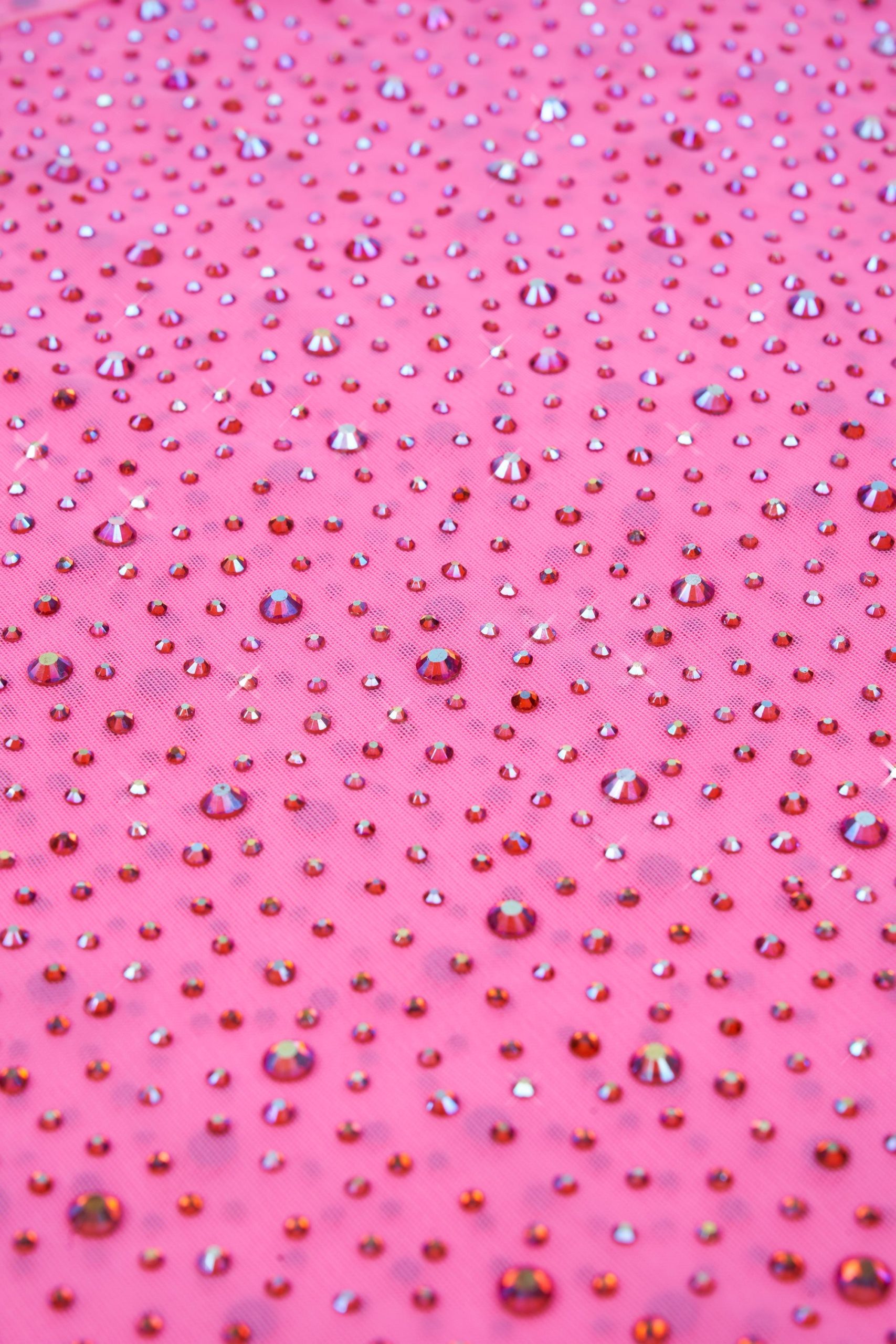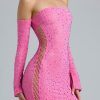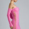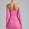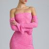 Embellished Lace-Up Off-Shoulder Mini Dress in Bubblegum Pink