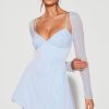 Designed to be noticed, the Naples mini dress is an all-new silhouette with a form-fitting bodice and an elegant angled mini skirt with gentle layers of mesh and jersey. Complete with sparkling seeded embellishment on the cups and single layer sleeves.