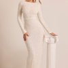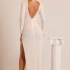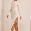 Effortless decadence. Ready to elevate your occasionwear wardrobe, Vienna is designed in our dual lined mesh fabric that’s embellished with pearl and bead adornment throughout. Featuring a sleek high round neckline, long embellished sleeves and a seductive open back, the Vienna maxi dress is complete with a daring thigh-high split that maximises allure.