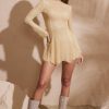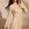 The Dixie mini dress is all about showcasing your body. Designed in figure hugging stretch mesh fabric with a glittering fishnet overlay that’s embellished throughout with rhinestone detailing, Dixie was designed for women born to shine. We love the classic high neckline and tight cut bodice and sleeves of this statement style that contrast the ethereal loose fit, handkerchief hem mini skirt. Complete with a statement cut out back that maximizes the seductive nature of this semi-sheer mini dress, Dixie is an effortless design with high impact.