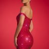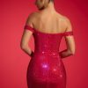 Sparkle that speaks for itself. The Leonora mini dress is embellished with diamond-shaped HOTFIX embellishments that catch the light from every angle, perfect for special events and festive parties. It’s made from our premium power mesh with a touch of stretch and a built-in corset for a figure-defining bodycon fit. It’s framed with a plunging sweetheart neckline and off-shoulder cap sleeves.