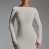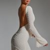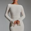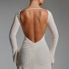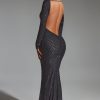 Designed to turn heads at any event, the Grazina mini dress is adorned with unique scalloped crystal embellishments that twinkle under spotlights. It’s cut from figure-hugging double-layered power mesh to a universally flattering A-line silhouette, complete with a sultry low back. It’s framed with a high boat neck and long flared sleeves for a chic twist.