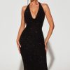 Sultry moments in Venice. Created from our delicately beaded, dual lined mesh fabric that’s gentle against the skin, the Venice dress features a plunging cowl neckline with halter neck fastening. A sophisticated midaxi silhouette, style from romantic date nights to intimate dinners.