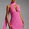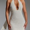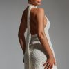 Statement styling. Designed to turn heads at memorable events, the Henrietta mini dress is cut to an A-line silhouette, framed with a plunging cut-out neckline and complete with an attached scarf that can be styled in multiple ways. It’s cut from double-layered premium mesh that hugs your curves and adorned with unique diamond grid crystal embellishments that sparkle in the light.