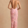 Embellished Scoop-Neck Backless Maxi Dress in Pink