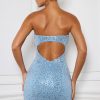 Make memories in the Hibana mini dress. Crafted from premium 20D stretch mesh and lined with stretch jersey, it’s cut to a classic bodycon silhouette with a plunging sweetheart neckline, complete with underwired cups for enhanced shaping. It’s framed with a cut-out back, detachable shoulder straps for custom styling, and adorned with scores of sparkling sequin and bead embellishments.