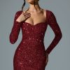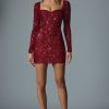 Sparkle all night long in the Sephina mini dress. A statement design saturated with scores of sequins, it’s crafted from premium stretch fabric and cut to a signature body-sculpting bodycon silhouette. It’s framed with long fitted sleeves and a universally flattering sweetheart neckline that offers the perfect amount of coverage and support.