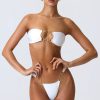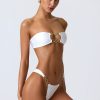Classic design, statement details. An elevated take on timeless styles, these bikini bottoms are uplifted with a trio of hammered gold-tone rings at each fixed side strap. Available in three mix-and-match hues, they’re crafted from premium stretch-jersey swim fabric with cheeky back coverage and ruched side straps that provide a comfortable, non-restrictive fit.