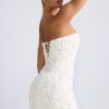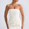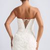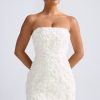 Inspired by the beauty of nature, the Azaelea dress is imagined in our London atelier and designed to turn heads. It’s crafted from premium satin with a delicate hand-applied tulle overlay comprising three-dimensional floral appliqués and cut to an A-line silhouette with a bandeau neckline. It’s fitted with an internal corset for enhanced shaping and silicone taping for a comfortable fit.