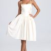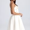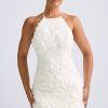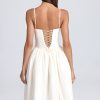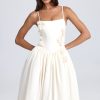 Inspired by the beauty of botanical gardens in high summer, the Rosabel midi dress is adorned with cascading hand-applied floral appliqués at the front. It’s crafted from lightweight georgette to a voluminous silhouette tempered with a fitted basque bodice that creates a sculpted shape. The whimsical design is framed with delicate camisole shoulder straps and signature lace-up detailing at the back that can be adjusted for your perfect fit.