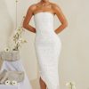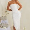Created to sparkle at elevated events, the Vivica midi dress is a glamorous and sophisticated piece designed to enrapture. Cut from our elegant georgette fabrication, the Vivica midi dress is a figure enhancing style with an internal corset structure designed to provide extra shaping and support. Tight cut to the body with a decolletage exposing, bandeau neckline, the Vivica midi dress features an draped asymmetric hemline skirt that exposes an alluring hint of thigh. Complete with delicate, hand sewn diamante embellishment throughout the design, the Vivica midi dress is an alluring and sophisticated style perfect for elegant events.