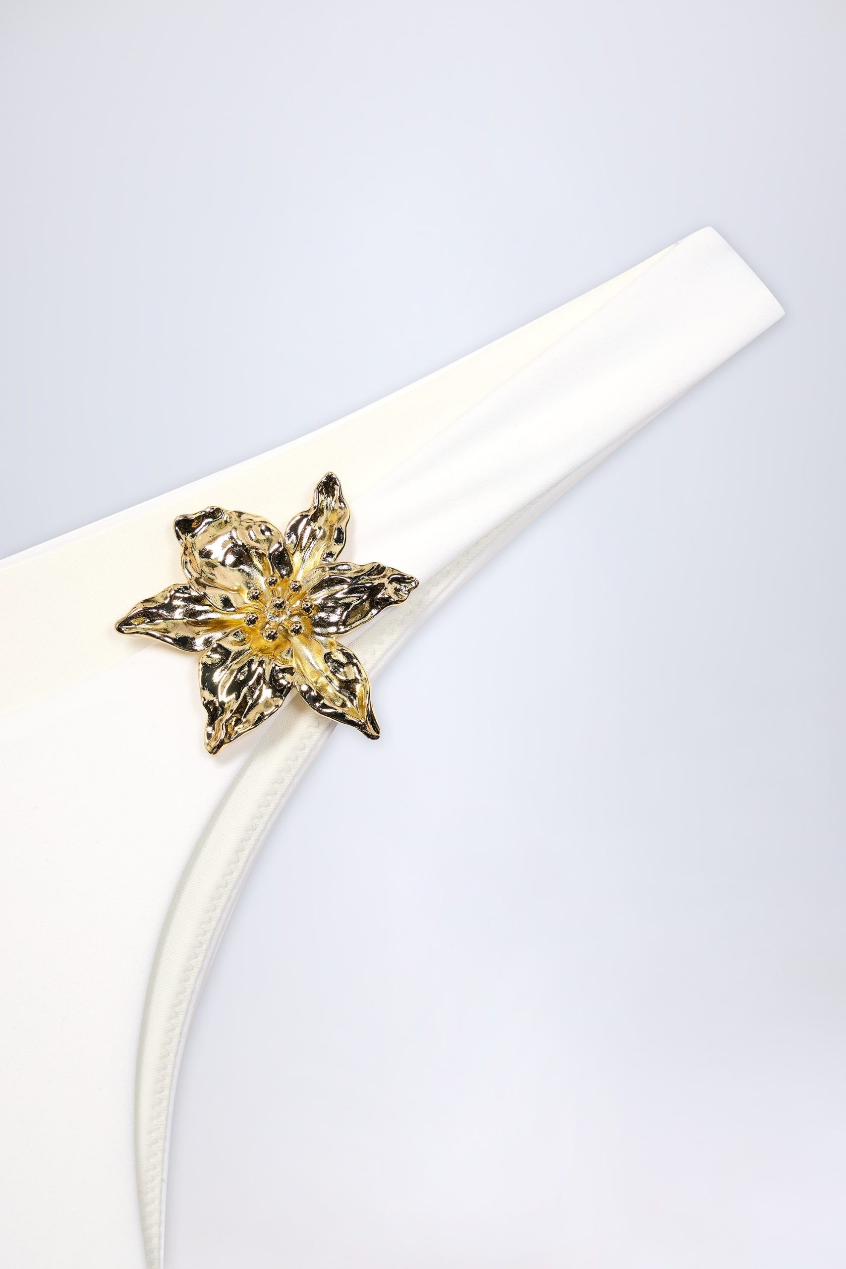 Details matter most. Perfect for tropical getaways, the Beqa bikini bottoms are embellished with flower-shaped hardware at one side that pairs back with tops and cover-ups from the collection. They’re crafted from premium stretch-jersey swim fabric to a high-cut silhouette with cheeky back coverage and feature fixed side straps for a secure, non-restrictive fit.
