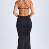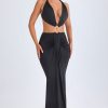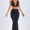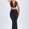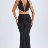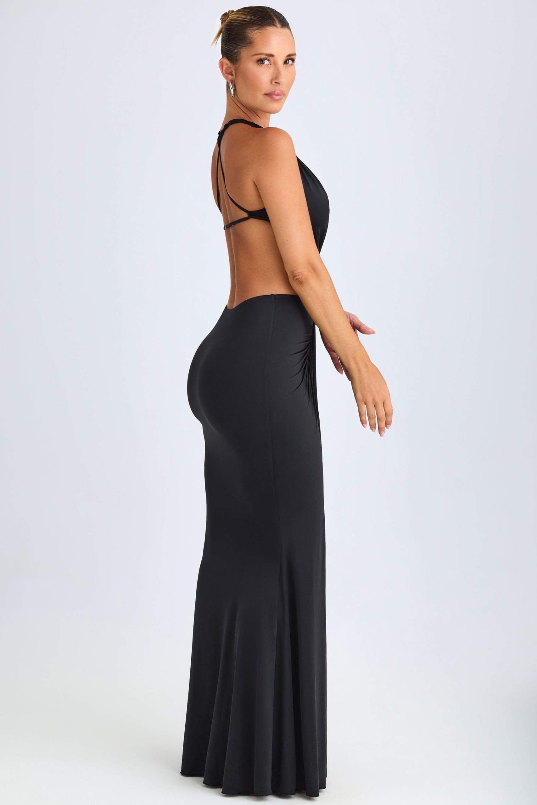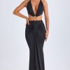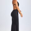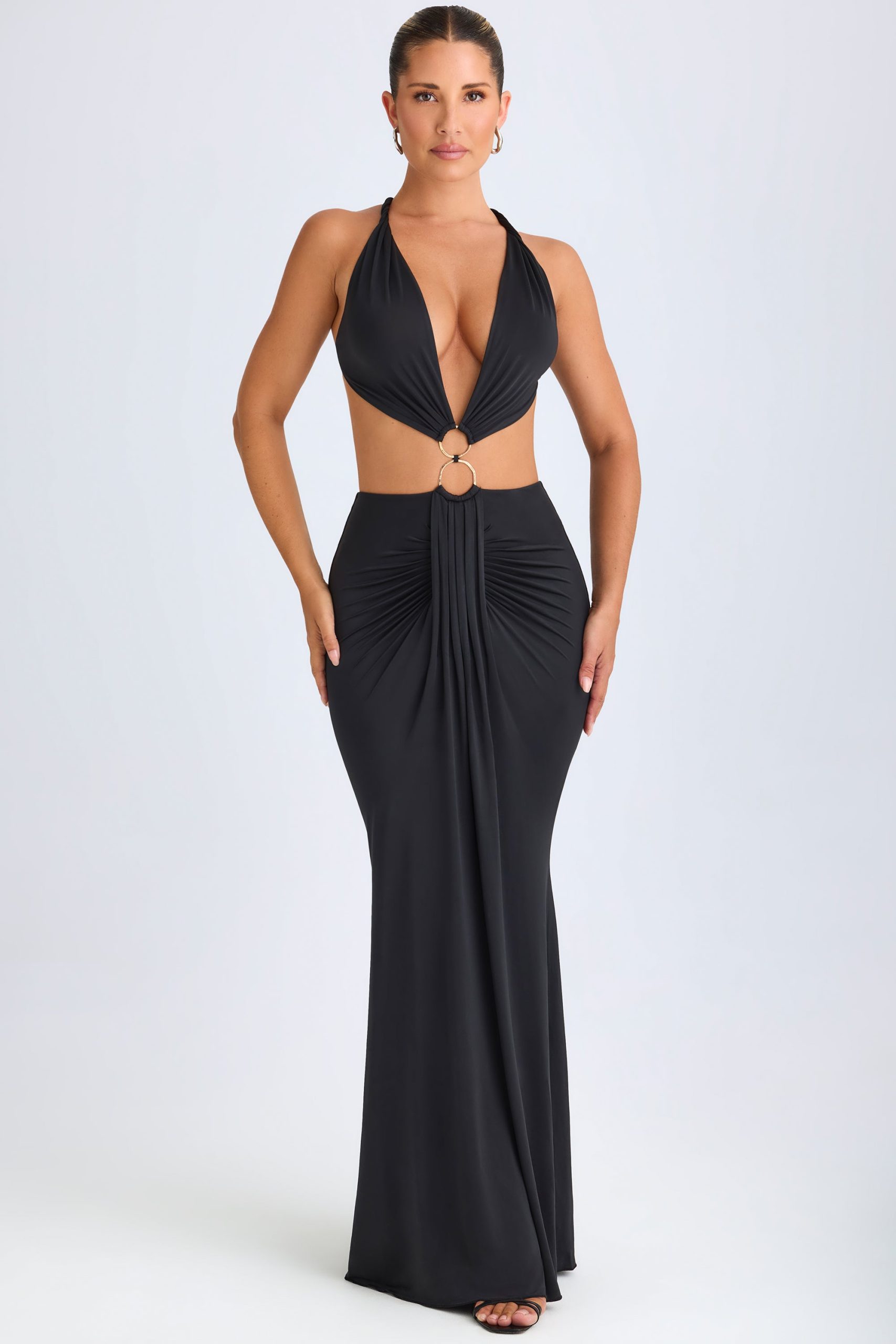 Hardware Detail Cut-Out Halterneck Maxi Dress in Black