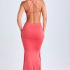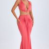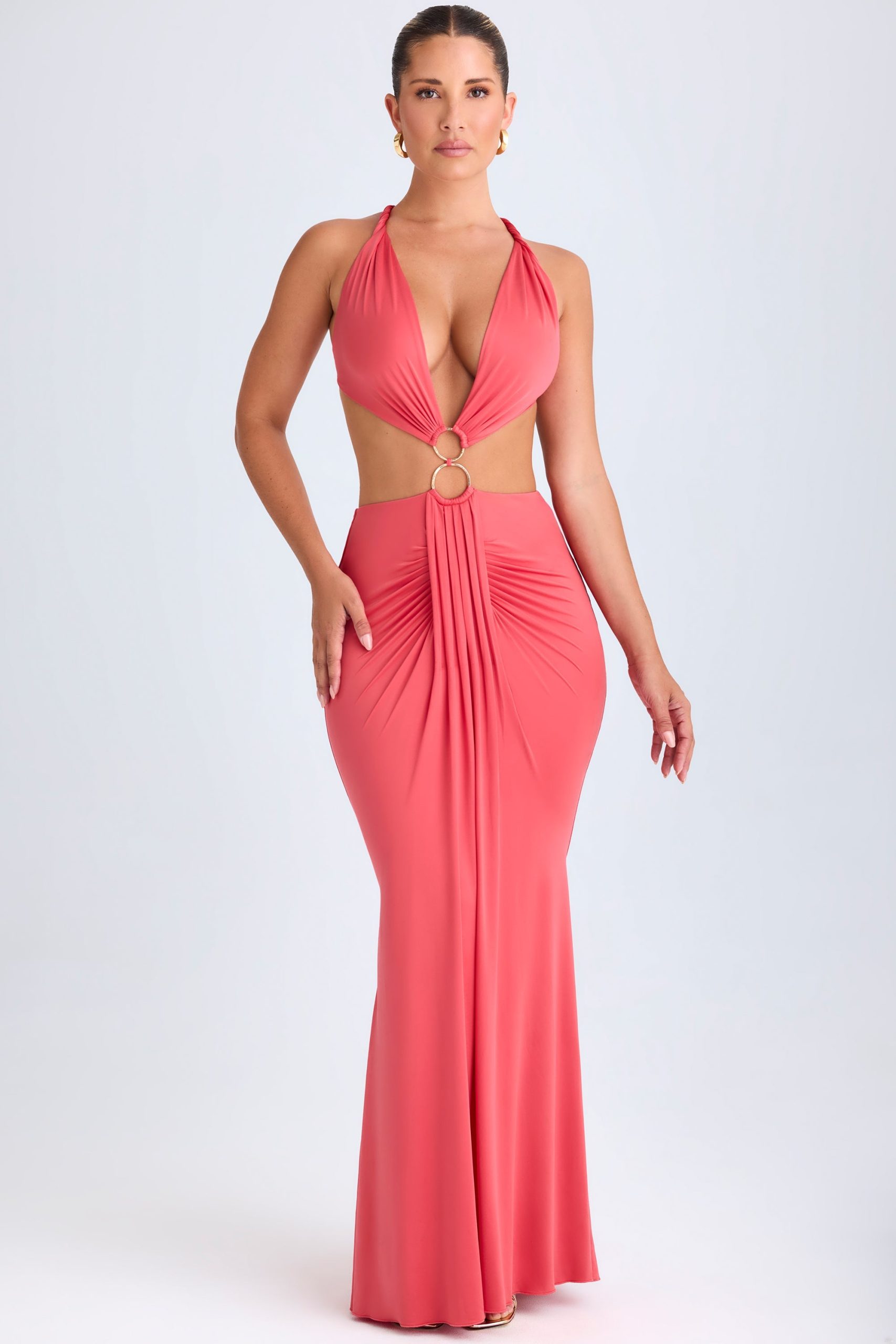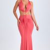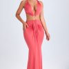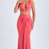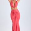 Made for sultry summer nights. A statement design you’ll want to pack for your next tropical getaway, the Omarosa maxi dress is crafted from premium, soft-touch slinky jersey to a figure-skimming fishtail silhouette. It’s framed with a plunging V-neckline and punctuated with statement cut-outs at the waist secured with polished O-ring detailing. The open back is detailed with criss-cross straps that can be adjusted for your perfect fit.