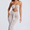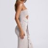 All dressed up. A style you’ll pack for years to come, the Susanna dress is a holiday favourite. It’s crafted from premium lightweight and textured jersey to a fishtail silhouette, punctuated with a statement waist cut-out and a cascading ruffle trim for added movement. It’s framed with a bandeau neckline, complete with custom-developed gemstone-embellished hardware.