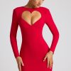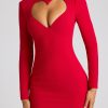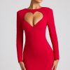 Heart Cut Out Long Sleeve Mini Dress in Fire Red