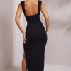 High Split Plunge Neck Maxi Dress in Black