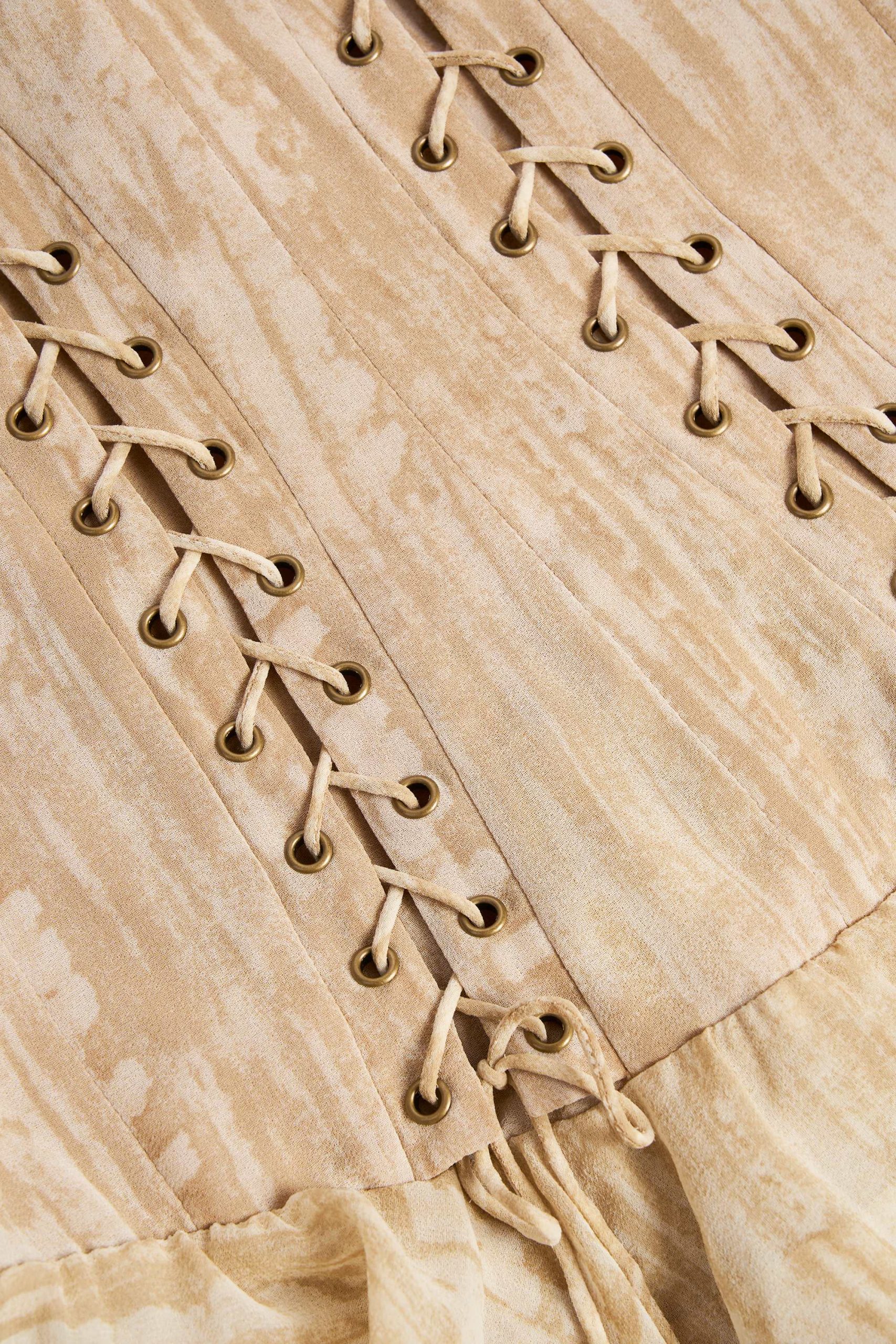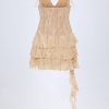 Western meets glamour with the Toren mini dress. Crafted from premium, lightweight chiffon with a stretch-satin lining for extra comfort, it’s designed with a sculpting corset bodice and tiered skirt, complete with a cascading ruffle trim. It’s elevated with lace-up eyelet detailing, ruched cups, and adjustable shoulder straps with functional rouleau ties for your perfect fit.