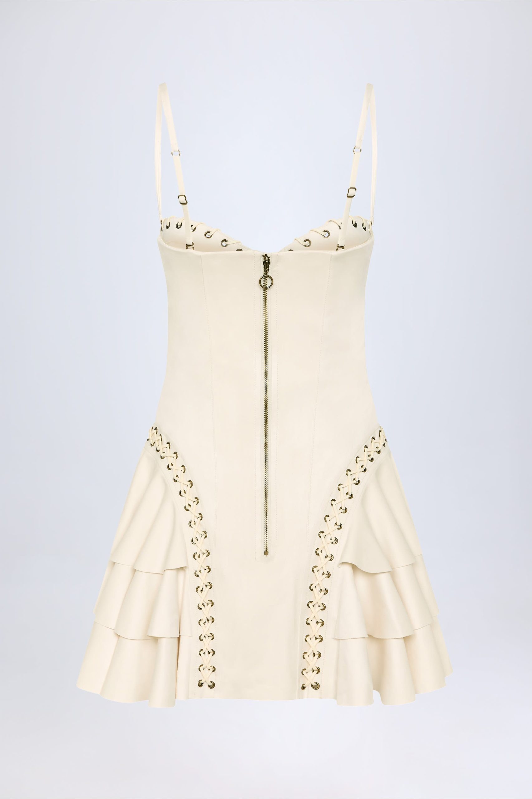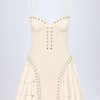 Western spirit. Perfect for summer dressing and festival season, the Hendrix mini dress is crafted from premium, soft-touch faux suede with a supportive corset bodice, complete with ruched moulded cups, and features a flared mini skirt with a dynamic tiered design. It’s elevated with tonal topstitching, decorative eyelets and lace-up detailing that brings the aesthetic to life.