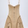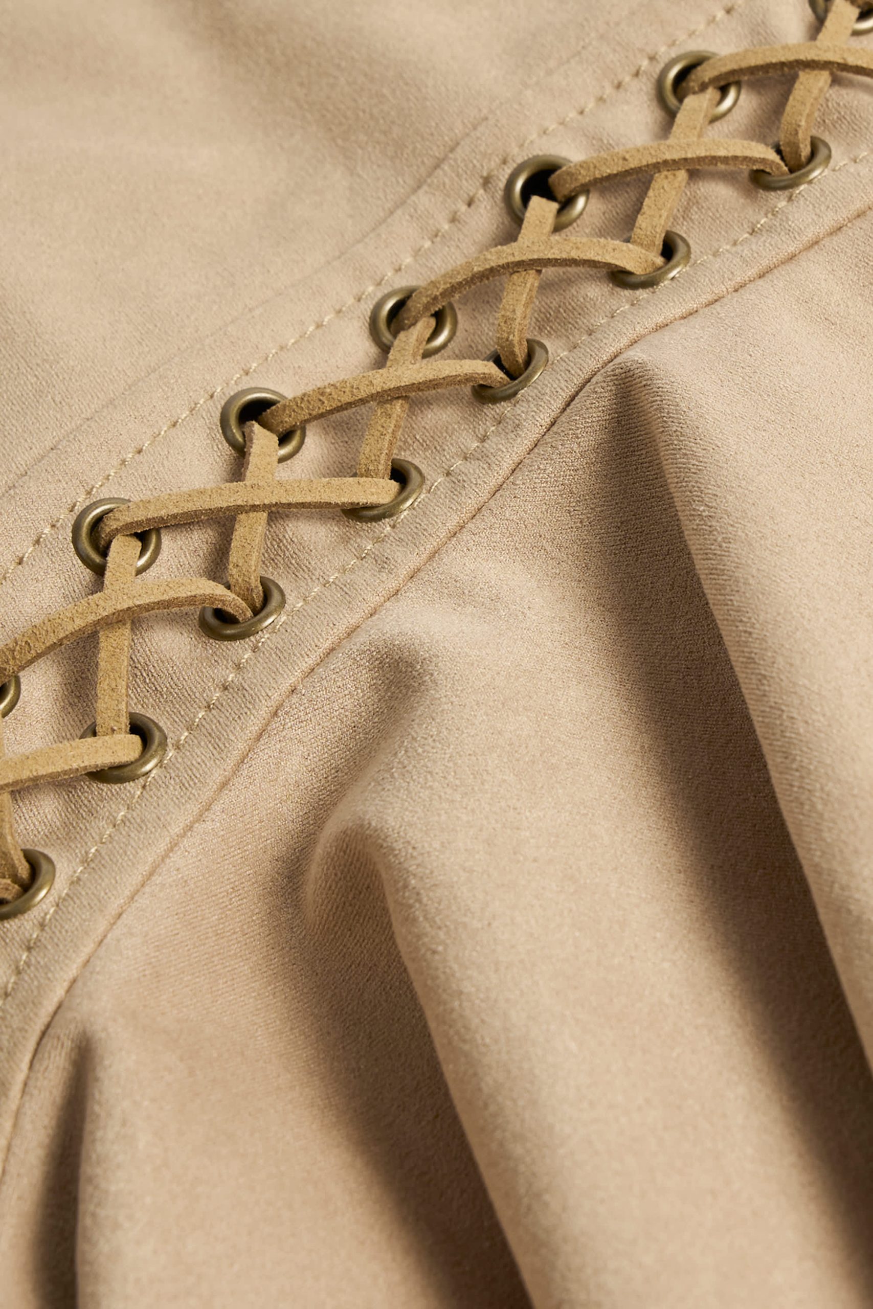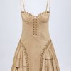 Western spirit. Perfect for summer dressing and festival season, the Hendrix mini dress is crafted from premium, soft-touch faux suede with a supportive corset bodice, complete with ruched moulded cups, and features a flared mini skirt with a dynamic tiered design. It’s elevated with tonal topstitching, decorative eyelets and lace-up detailing that brings the aesthetic to life.