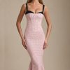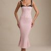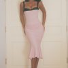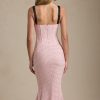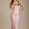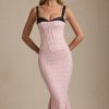 Classic, sculpted, endlessly chic. The Valentina midaxi dress is crafted from premium stretchy georgette fabric to a figure-defining fishtail silhouette, creating the hourglass silhouette you love. It features a corset bodice, vintage-inspired peekaboo detailing with delicate picot lace trims, and soft cups for enhanced shaping and support. The wide tapered straps are fully adjustable for your perfect fit.