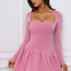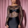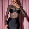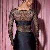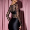 Love at first sight. A style they’ll be thinking about long after the evening is over, the Eliette mini dress is crafted from premium stretch-jersey with a high-shine finish and elevated with semi-sheer floral lace panels that highlight your decolettage, waist and back for a romantic look. Framed with a high boat neck and long sleeves, it’s complete with ruched detailing at the bust and skirt.