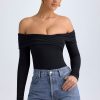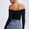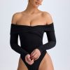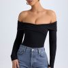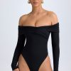 Modal Off-Shoulder Ruched Bodysuit in Black