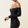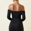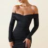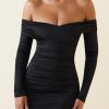Off-Shoulder Ruched Bodycon Mini Dress in Black