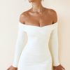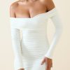 Off-Shoulder Ruched Bodycon Mini Dress in Vanilla