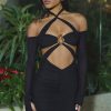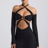 Looking to make a statement on your next dinner date? Meet the Kemina mini dress. Available in two standout hues, it’s crafted from our premium 20D mesh fabric to a mini silhouette enhanced with spliced cut-outs at the front, chest and back. It’s framed with off-shoulder long sleeves and secured with custom-developed metal hardware detailing at the bust.