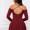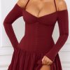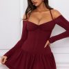 Romantic detailing meets contemporary silhouettes with the Maren mini dress. Designed with endless evenings in mind, it’s crafted from figure-hugging stretch georgette and sheer jersey with a corseted bodice and tiered ruffle skirt. The sweetheart neckline is framed with halterneck straps that cross at the back and long off-shoulder sleeves. It’s complete with non-functional hook-and-eye detailing, cementing the romantic inspiration.