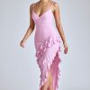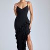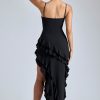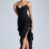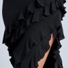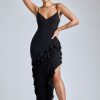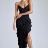 Panelled Ruffle Evening Gown in Black