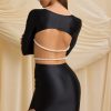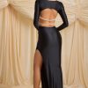 It’s all in the details. The perfect option for your next occasion, the Quintessa maxi dress is made from high-shine stretch jersey that hugs every curve perfectly. It features a built-in bodysuit, draping at the waist, and falls to a universally flattering column silhouette. The cut-out open back is elevated with two rows of faux-pearl straps, inspired by classic jewellery, that can be detached for multiple styling options.