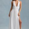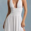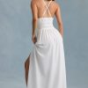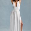 Daytime classics. Cut from lightweight and breezy georgette that pairs well with warm destinations, the Pryana maxi dress is cut to a relaxed column silhouette. It’s framed with a plunging V-neckline, a universally flattering shirred bust for comfort, and adjustable cross-back straps.