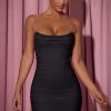 If you love timeless romantic styles, you’ll love the Femi mini dress. Cut to a figure-flattering bodycon silhouette with all-over ruching, it’s crafted from premium mesh with ample stretch for extra comfort. It’s framed with a draped cowl neckline, invisible camisole straps that can be adjusted for your perfect fit and a low V-shaped open back for a statement finish.