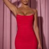 If you love timeless romantic styles, you’ll love the Femi mini dress. Cut to a figure-flattering bodycon silhouette with all-over ruching, it’s crafted from premium mesh with ample stretch for extra comfort. It’s framed with a draped cowl neckline, invisible camisole straps that can be adjusted for your perfect fit and a low V-shaped open back for a statement finish.
