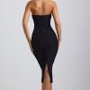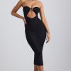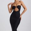 Ruched Hardware Detail Strapless Midaxi Dress in Black