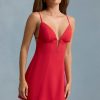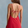 Summer days in Seliora, our A-line mini with a playful twist. Crafted from lightweight georgette, the pretty and polished silhouette features a plunging V-neckline, scalloped hem with a contrasting underlay and a statement open back with adjustable ties for your perfect fit.