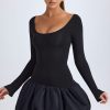 Signature minimalism. A versatile design that can be mixed and matched for custom poolside styling, the Naxos bikini top is crafted from stretch-jersey swim fabric to a scoop-neck silhouette with an open back, secured with a slender tie for a custom fit and minimal tan lines. It’s complete with adjustable shoulder straps that support all-day comfort.