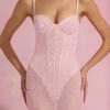 Ready for the spotlight. A head-turning silhouette, the Alara gown is crafted from premium 20D stretch mesh with a boned corset bodice and built-in bodysuit for enhanced coverage and support. It features a figure-skimming floor-length skirt with a stunning puddle train and is fully embellished with signature HOTFIX embellishments for maximum sparkle.