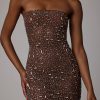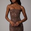 Sleek and seductive with statement sparkles, Caprice is the perfect party dress. Its leg-lengthening mini silhouette is sure to wow and features a straight bandeau neckline and detachable shoulder straps. Designed in our premium sheer power mesh fabric with allover crystal hotfix embellishment, Caprice will ensure all eyes are on you. Prefer more coverage? Pair Caprice with our Intimates slip dress.