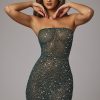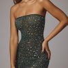 Sleek and seductive with statement sparkles, Caprice is the perfect party dress. Its leg-lengthening mini silhouette is sure to wow and features a straight bandeau neckline and detachable shoulder straps. Designed in our premium sheer power mesh fabric with allover crystal hotfix embellishment, Caprice will ensure all eyes are on you. Prefer more coverage? Pair Caprice with our Intimates slip dress.