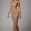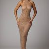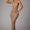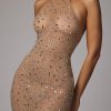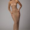 Designed in our premium sheer stretch mesh and hand embellished with delicate crystal hotfix adornments, Soraya is undeniably captivating. With a high halter neckline and seductive, figure-hugging fit, Soraya is complete with a narrow back split that allows for graceful movement, wherever the evening takes you.