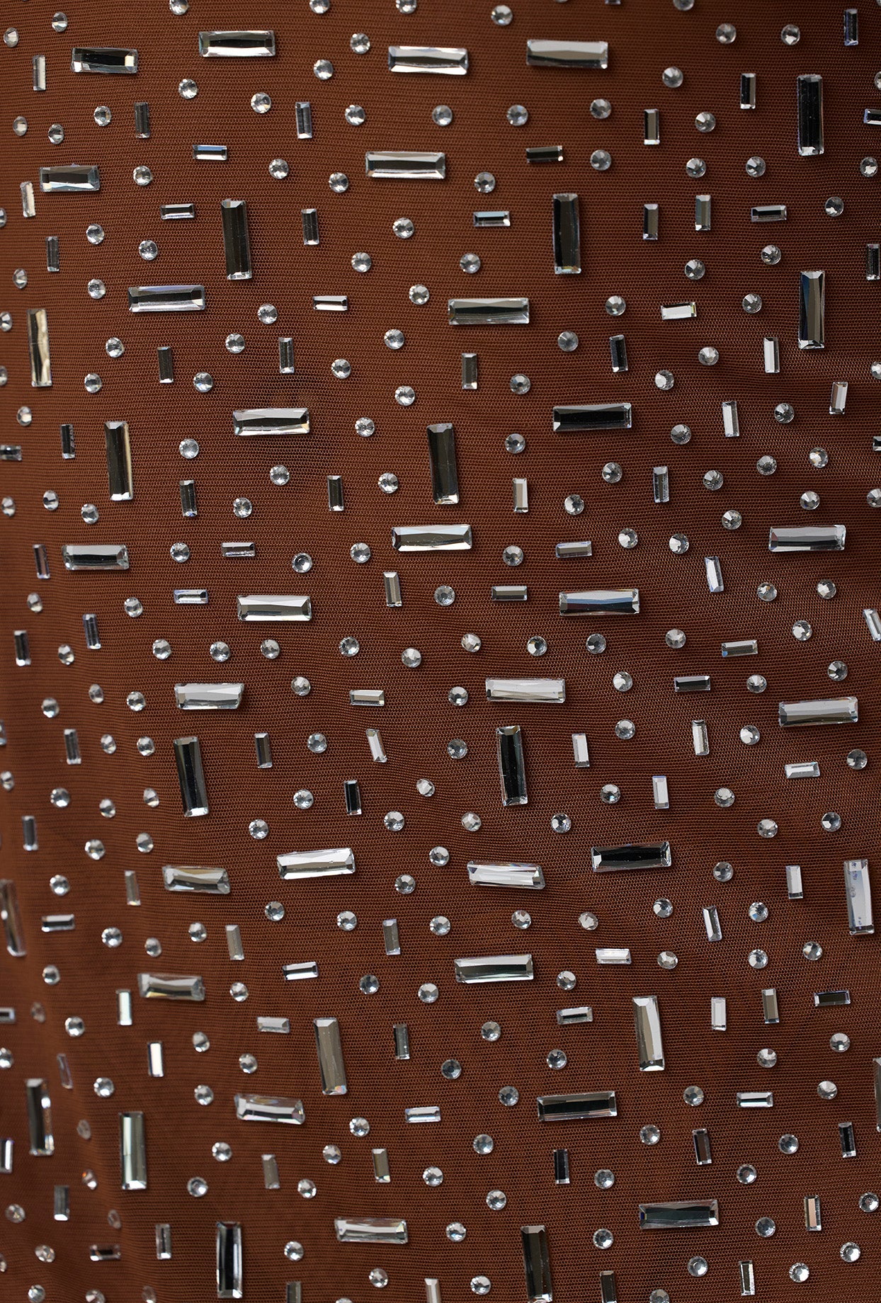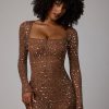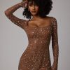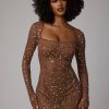 Catch the light. Designed in our premium stretch mesh fabrication with delicate crystal hand embellishment throughout, Zeta is a glittering mini dress made for sparkling evenings. Complete with a square neckline, long embellished sleeves, and a thigh-skimming A-line skirt.