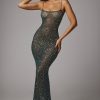 Glittering evenings. A premium design crafted by our team of in-house ateliers, Antonella is an effortlessly glamorous gown cut from sheer, stretch mesh fabric and hand embellished with delicate artisanal crystal hotfix. Complete with a soft scoop neckline and delicate shoulder straps.