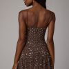 Nights to remember. Crafted in our premium stretch mesh fabric with delicate artisanal hand embellishment throughout, Durrani is a sparkling mini dress designed to captivate. Complete with delicate shoulder straps and an elegant angled mini skirt that falls in gentle pleats.